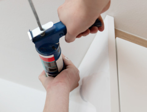 Làm sạch bề mặt, bôi silicone không axit vào khe giữa gạch và trần, rồi kiểm tra chất lượng hoàn thiện